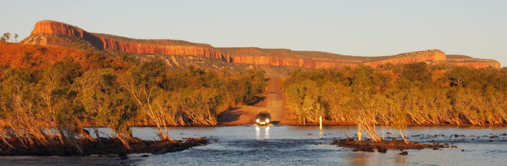 After breakfast we break camp and head north to the Gibb River Road. Our first stop along the Gibb is Elquestro Station. Upon arrival at Elquestro we begin our exploration with a hike into Emma Gorge. The Emma Gorge hike leads us through towering sandstone escarpments to eventually arrive at a tall waterfall in a lush tropical paradise. This hike is for the fit and adventurous, some rock hopping is required. After a swim we return hike and depart Elquestro. As we travel further along the Gibb, we descend to and cross the tidal section of the mighty Pentecost River. This can be a tricky crossing early in the season; we may even spot a crocodile as we cross! After a short drive, we arrive at our day’s final destination. Home Valley Station is owned and operated by the Indigenous Land Corporation, and is one of the emerging Kimberley indigenous outback experiences. Nestled in the mighty Durack Ranges the station is signalling our arrival into the Kimberley central plateau. The dominant Cockburn Range exhibits the most striking panoramic perspective of this classic east Kimberley Durack country at sunset.